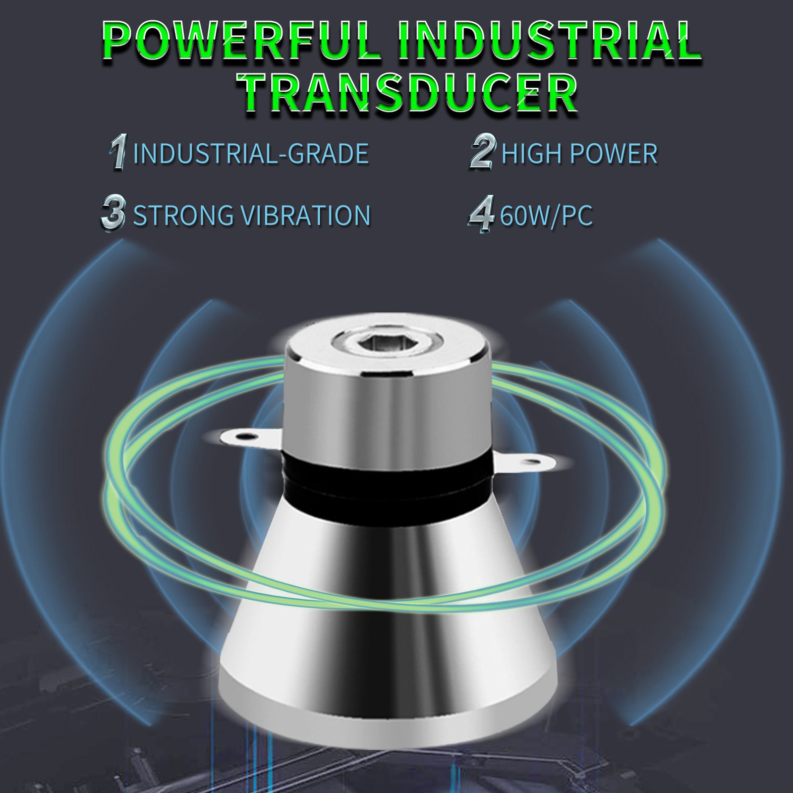 Powerful 240W transducers generate intense cavitation bubbles that penetrate deep into crevices and blind holes, ensuring thorough cleaning of even the most complex geometries.