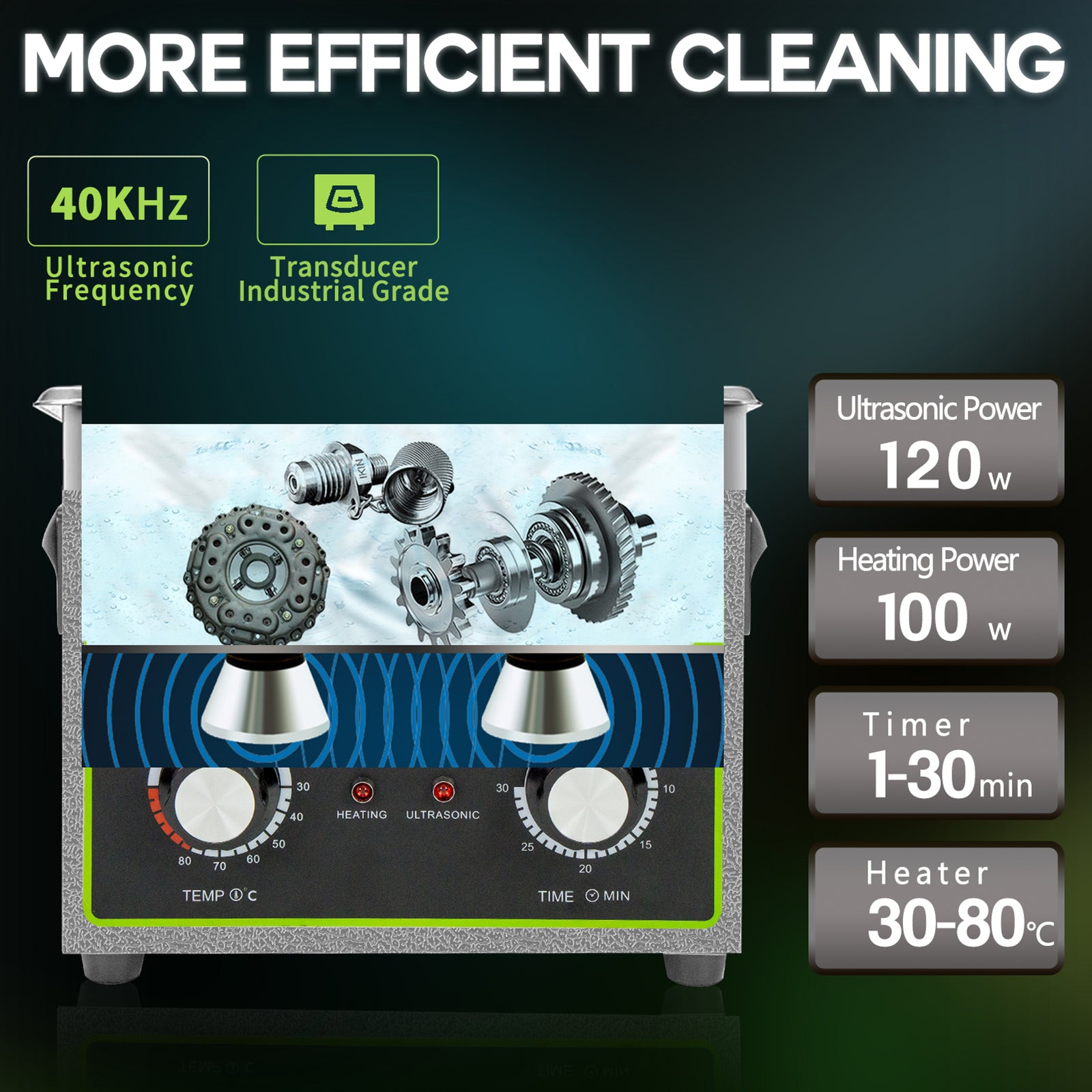 💪 120W Powerful Ultrasonic Waves: Driven by robust 120W transducers, this cleaner delivers strong cavitation energy for effective cleaning across a wide range of items, from delicate jewelry to greasy small tools.
