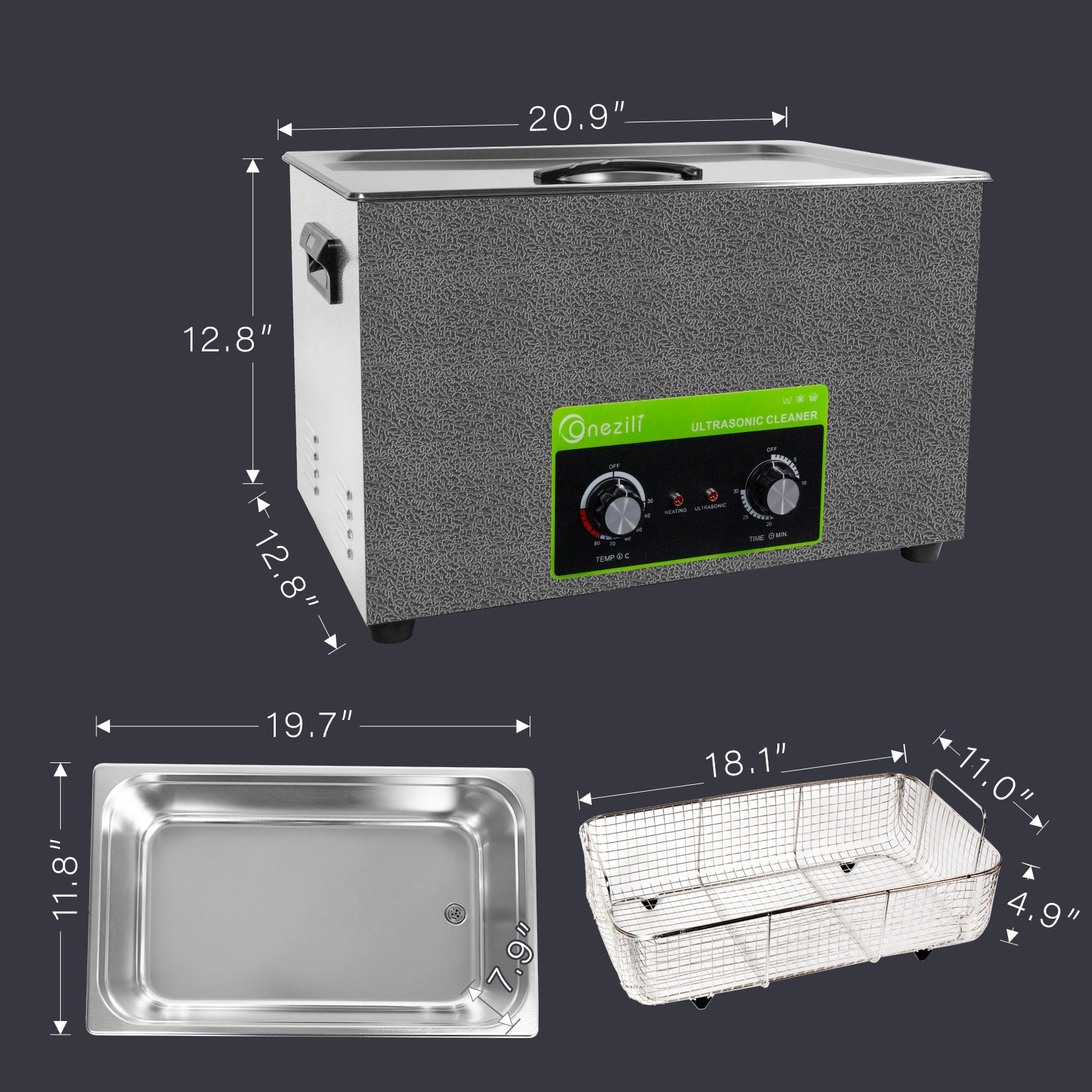 ONEZILI 30L Ultrasonic Cleaner with Digital Timer & Heater, Industrial & Home Use for Parts, Tools, Jewelry, Carburetor Cleaning